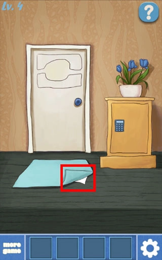 打开门下面的地毯,获得一张纸