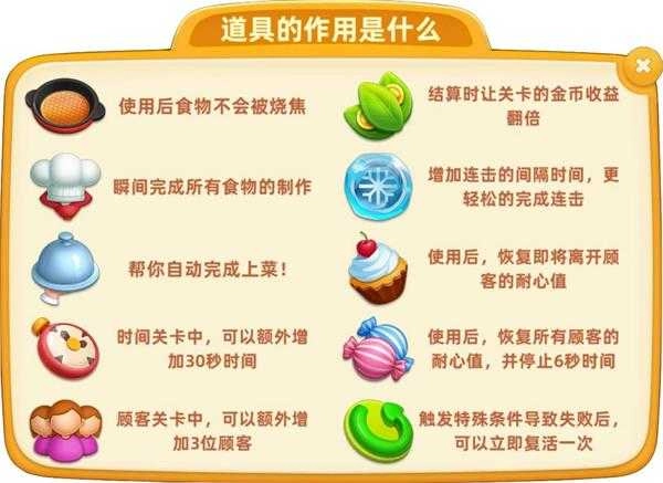 在《小镇大厨》这款游戏中,为了助力大厨更顺利地通关并获取更丰厚的收益,游戏内准备了种类繁多的道具可供大厨挑选使用。