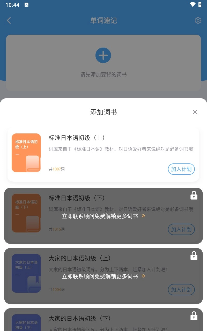 点击添加单词书