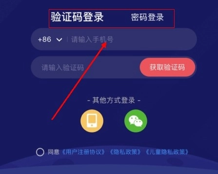 在登录界面,您可以选择通过验证码完成注册验证,也可以直接使用密码进行登录操作。