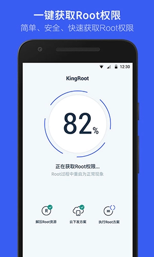 KingROOT软件通过了严格的安全检测,配备完善的Root失败防护机制,可切实保障手机安全,截至目前尚未接到因Root导致手机损坏的反馈。作为全球装机量领先的Root软件,它是品质与信任的可靠保障。