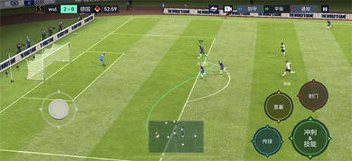 在比赛过程中,当玩家向下滑动射门按钮时,精准射门功能便会被触发,此时球员会完成搓射(也就是弧线射门)的技术动作,这种射门方式最适合在禁区内呈斜45度角的位置进行攻门。