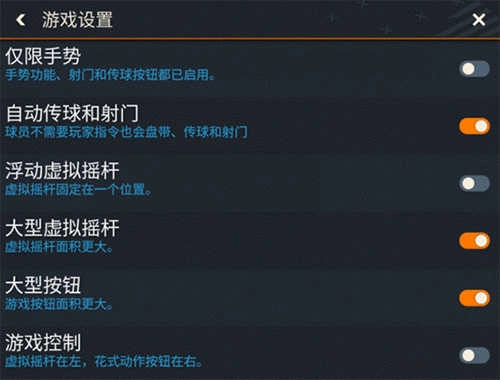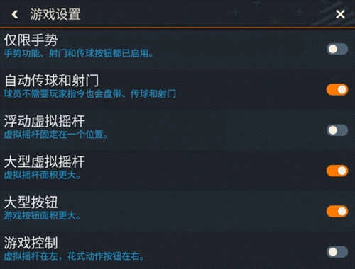 在设置界面,玩家能依据自身习惯决定是否开启自动传球和射门按钮。一旦开启该功能,在比赛过程中,当玩家未操控球员且球队处于由攻转守的阶段时,系统会自动执行防守操作。另外,玩家也可根据自己的使用习惯选择是否开启仅限手势按钮,若开启此按钮,玩家在比赛里就只能通过手势来进行防守,无法使用按钮操作。