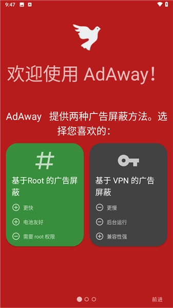 2、按照实际需求,自主挑选一种广告屏蔽的方法,此处我们以需要root权限的广告屏蔽方式为例进行说明。