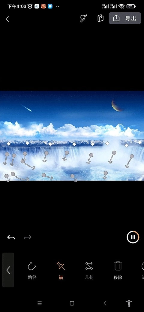 锁定涂抹区域后它就不会移动,解锁后则会开始移动。这里主要是通过这种方式来制作水的流动效果,空中的云朵效果也是用同样的方法实现的。