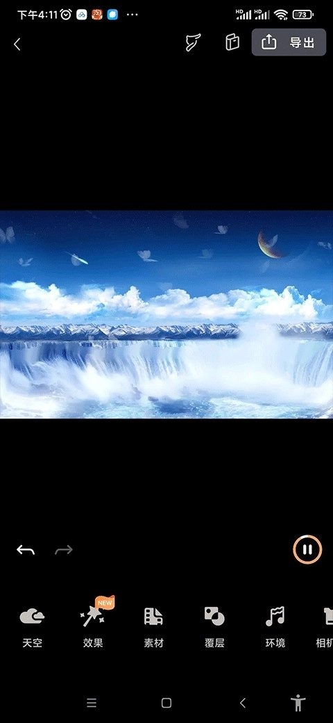 接着点击“覆层”选项,挑选图中展示的“ES09”效果——这个效果会添加飞舞的蝴蝶,当然你也可以选择其他特效,完成后点击右上角的“导出”按钮。