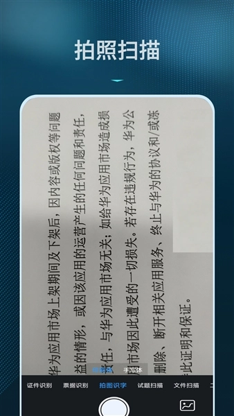 2、在拍照识别界面选择“票据识别”,对准目标票据按下拍摄键。