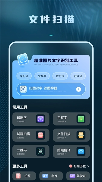 用户可选择文件扫描工具,对图片中的各种文件进行扫描识别生成电子文件使用。