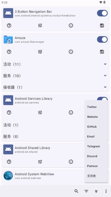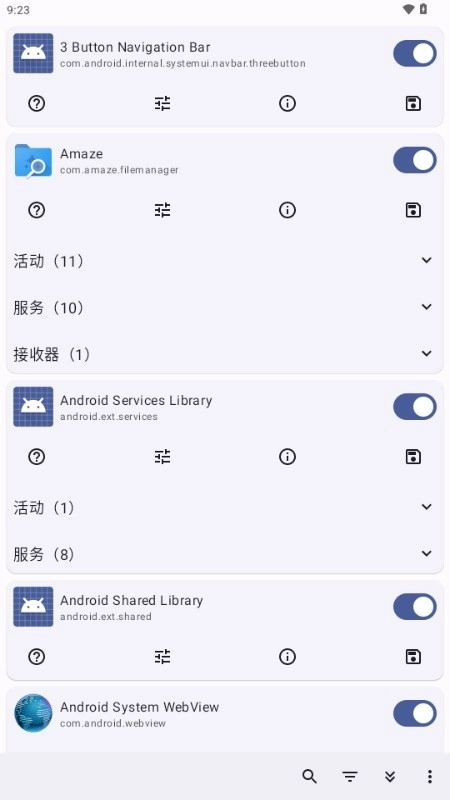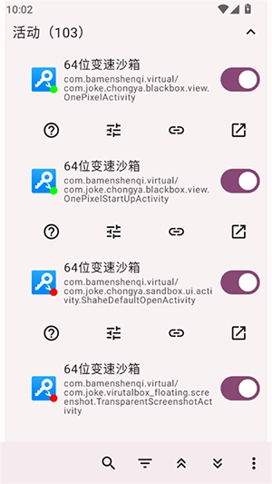 活动列表呈现当前选定应用的全部活动组件,每个活动项都包含: