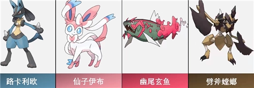 T2:路卡利欧、仙子伊布、幽尾玄鱼、劈斧螳螂、超甲狂犀、象牙猪、自爆磁怪、帝王拿波、火爆兽、月亮伊布、卡比兽