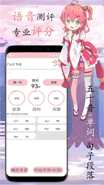 涵盖平假名与片假名五十音的语音发音学习,同时区分清音、浊音、拗音,另外还包含五十音巧记法