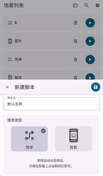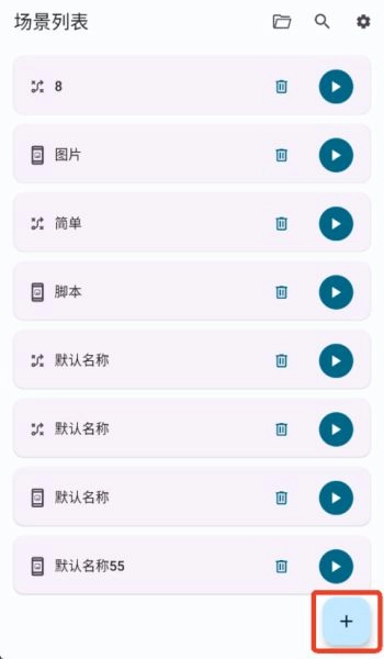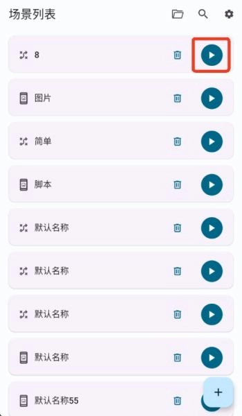 5、我们能够在场景列表中找到刚创建好的脚本,点击其右侧的开始按钮即可。智能模式的操作方式相同,直接点击保存后,它会出现在列表里,同样可以使用。