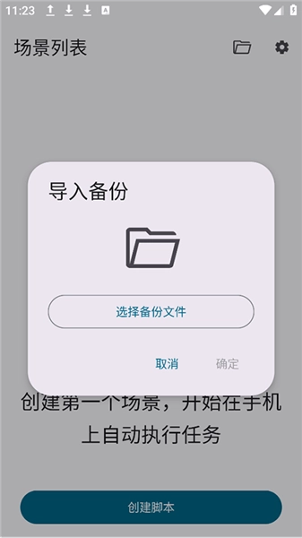 4、接着点击【导入备份文件】选项,把手机本地存储里的 .json 格式脚本文件导入进去就可以了