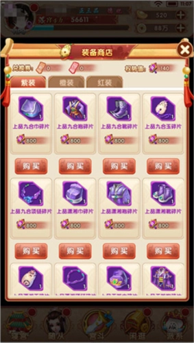 玩家通过各种奖励获得的权势值可以在装备商店中兑换各种品质装备的碎片