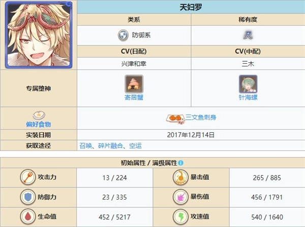 小龙虾作为输出系的飨灵,为什么会在肉盾推荐中出现?主要是因为面板属性,虽然不具备天生的防御系技能(小龙虾的技能都是高爆发单体,且具备斩杀效果),但是天生高生命值属性使得相比一般R级甚至部分SR级防御系飨灵毫不逊色~就是比较难抽到……