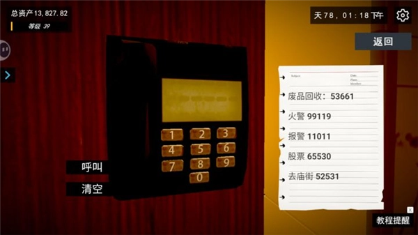 2、收废品:大门,你的右手边有个小电话,点开输入纸上有个回收废品的数字,然后点左边的呼叫就行