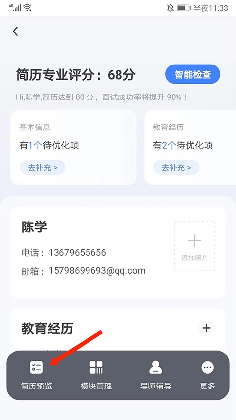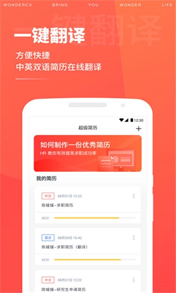 为你的简历智能打分,检查简历错误,用专业科学的方法帮你快速制作修改简历。还有大牛简历案例,和简历填写Tips让成功率翻倍。