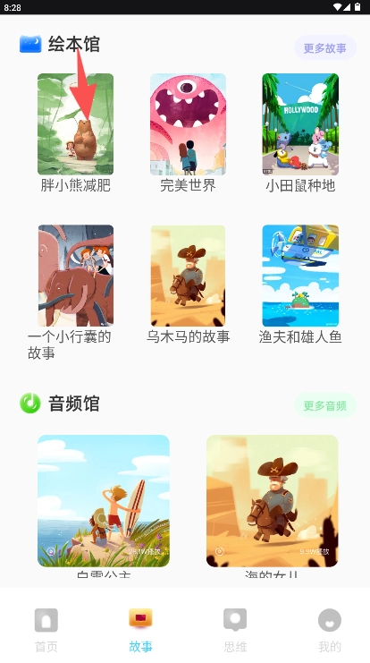 2、在页面的“绘本馆”区域,浏览并点击目标绘本例如“胖小熊减肥”。