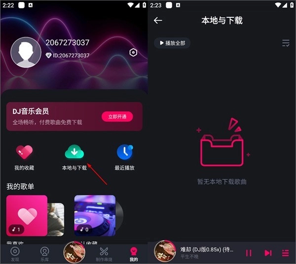 4、当用户歌曲后即可在我的页面中打开本地与查看已的歌曲。