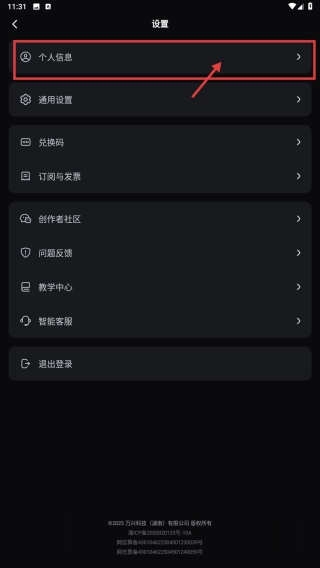 3、在设置页面,点击个人信息选项,进入信息管理界面。