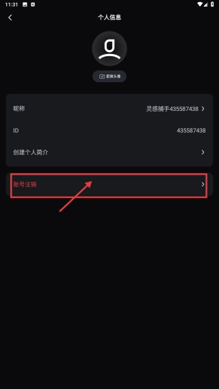 4、进入个人信息页面后,点击账号注销这一选项,从而发起账号注销流程。