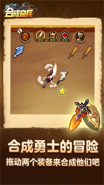 《合成奇兵》是一款主打休闲合成玩法的冒险小游戏,核心机制是将两件同等级的装备或角色单位拖拽合并,从而合成更高等级的新物品。每次升级不仅能提升属性数值,还会解锁全新技能。游戏内设有宠物系统,玩家可自由捕捉并培养各类宠物。击败怪物后会掉落金币,这些金币可用于升级额外科技,例如缩短冷却时间、额外产出2个物品等,这类科技性价比极高,建议玩家优先升级。