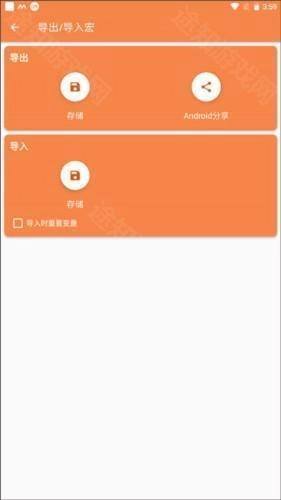 当前的宏列表能够备份至设备的SD卡中。一旦应用程序重新安装或是转移到新设备,就可以导入该备份文件。