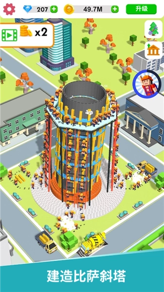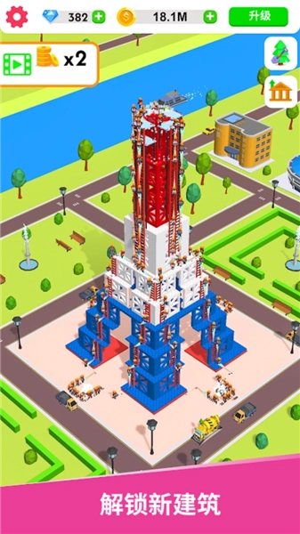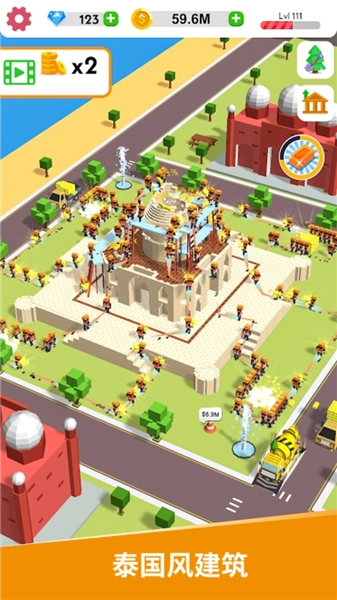 1、玩家通过点击屏幕,可以让你的工人快速工作起来,加快建造获得收益。