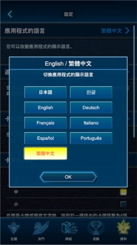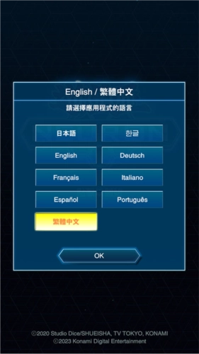 用户首次进入游戏王neuron时,就有一次选择语言的机会,此时勾选【繁体中文】即可设置中文语言。