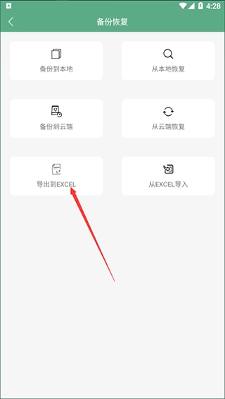 选择“导出到EXCEL”选项,同样能一键把所有数据导出成Excel文件,另外还有备份、导入等实用功能可供体验。