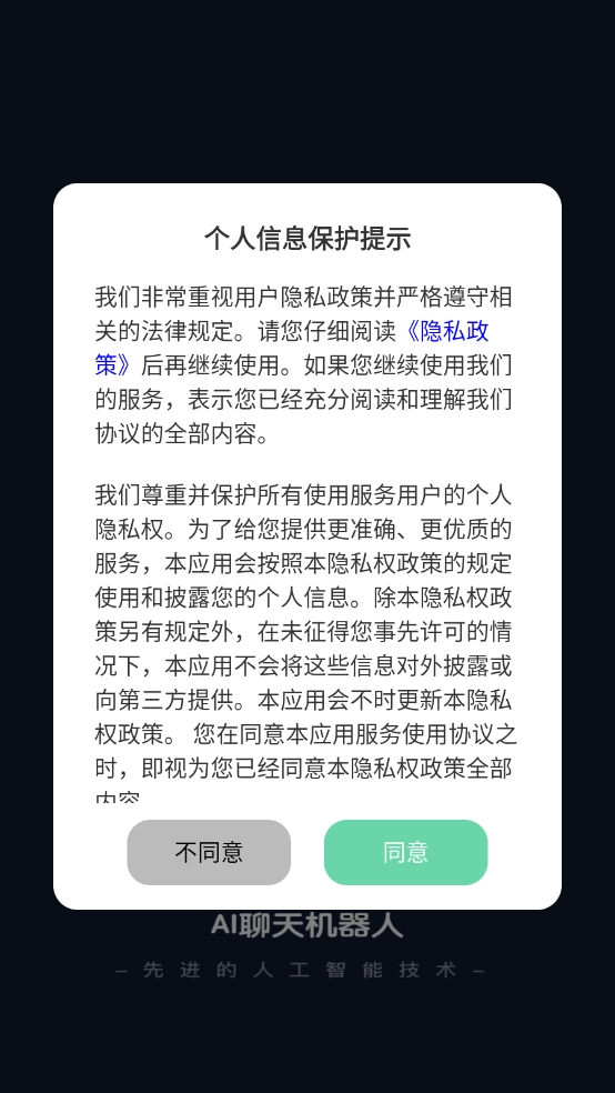 安装ChatGeairt应用,同意相关的政策条款与协议后将其打开。