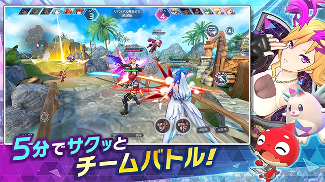 祭典之战是COLOPL推出的6vs6团体对战动作游戏。在这款游戏里,玩家能操控白猫Project NEW WORLD'S和怪物弹珠等作品中的诸多高人气角色展开对决,每场对战时长设计为约5分钟,既能确保游戏的紧张刺激感,又不会让玩家产生疲劳感。