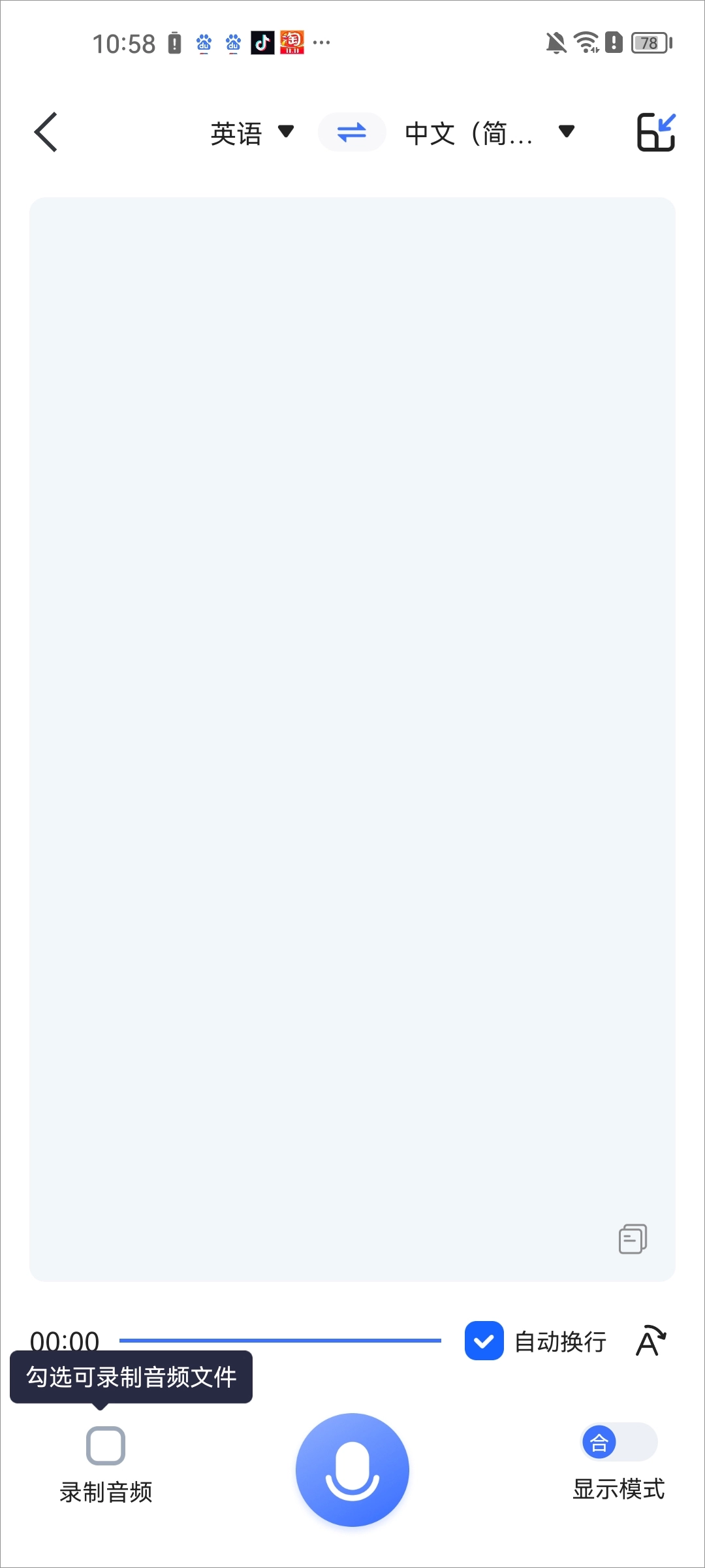 点击左下角的按钮,既可以录制音频或视频,还能实现语音与文字之间的互译功能。