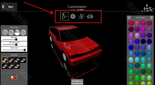 1、返回游戏主界面,点击屏幕左上角的第四个按钮,即可进入改装界面。