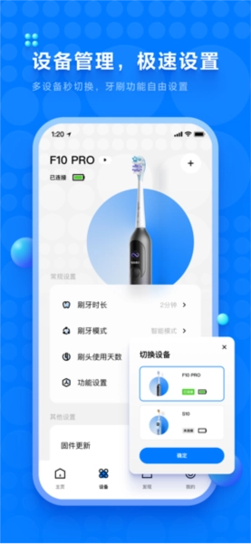 多设备秒切换,牙刷功能自由设置