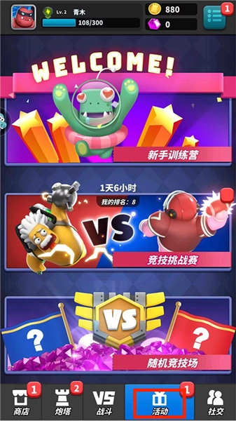 进入【活动界面】后,你可以选择参与“新手训练营”“竞技挑战赛”“随机竞技场”等多种不同类型的活动。