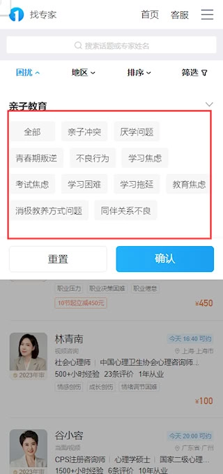 在专家服务界面,第一步要从展示的常见心理困扰类型里挑选对应的问题分类。该分类体系包含情绪障碍、压力调适、人际交往等多个专业范畴,可助力精准匹配最合适的咨询领域。
