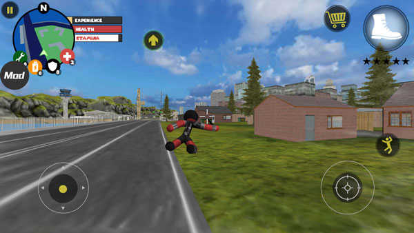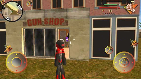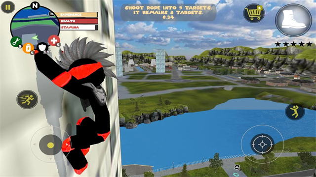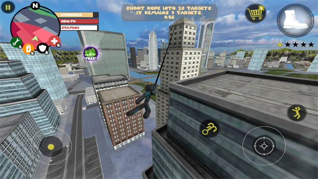 虚拟摇杆的控制逻辑与常见的移动操控相似,通过摇杆的倾斜方向和幅度精准控制火柴人的移动方向与速度。跳跃高度和距离取决于按键的时长。绳索技能则是基于物理原理模拟,绳索发射后,火柴人会像钟摆一样摆动,玩家可通过调整摆动时机与方向,利用绳索在城市高楼间穿梭。例如,在接近建筑物时,松开绳索按钮可让火柴人跳向建筑物。