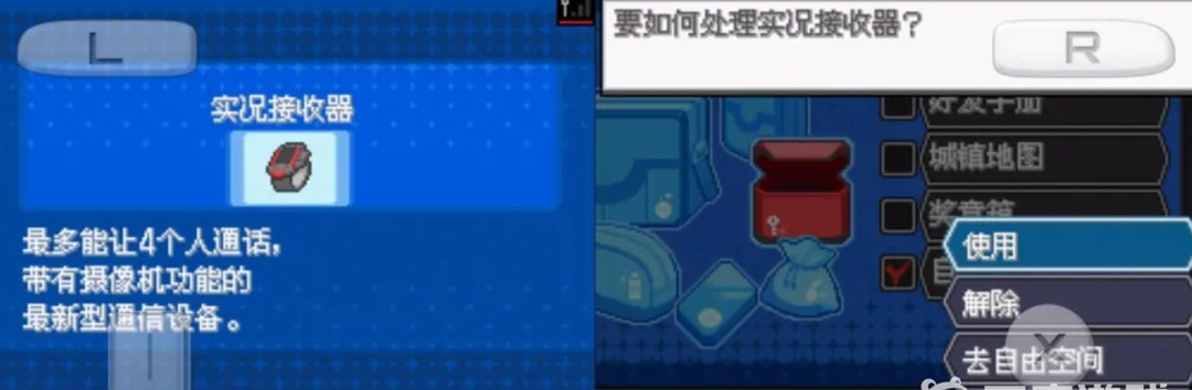 在背包中找到重要道具,然后从重要道具里找出实况接收器。