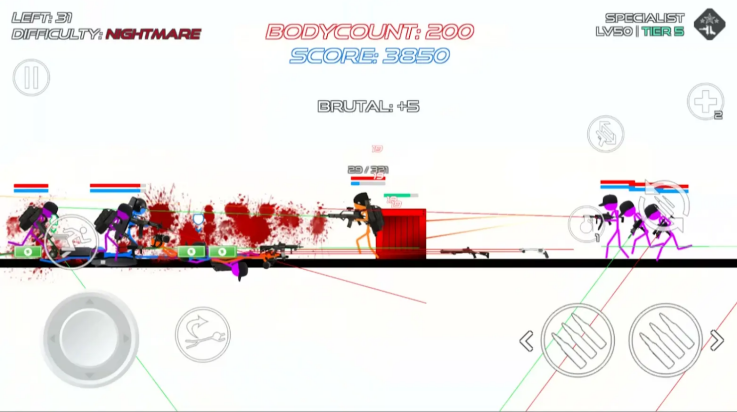 操作简单易上手,虚拟按键布局合理,响应灵敏,玩家能轻松指挥火柴人军队行动,专注于策略与战斗。