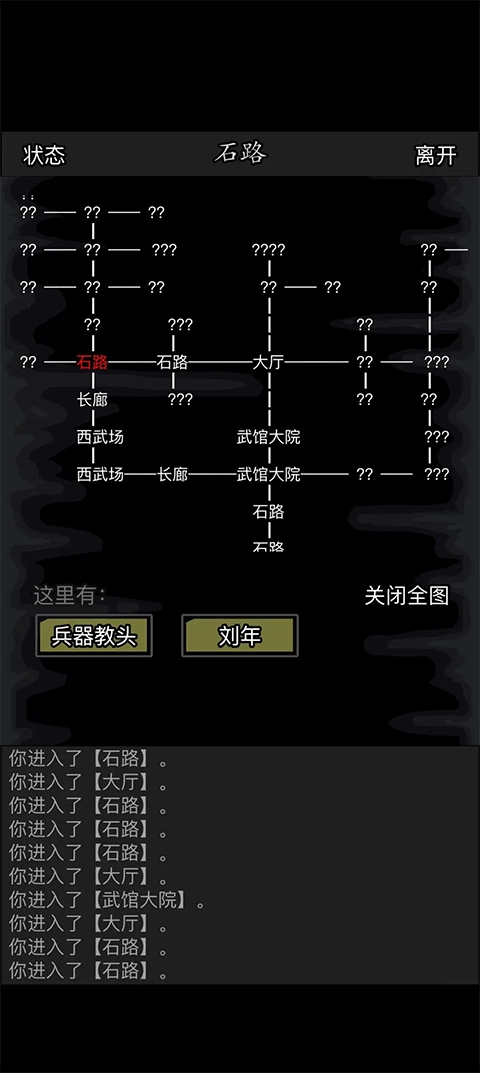 点击江湖界面,进入江湖往事板块后,就能解锁新手村的金牛武馆。进入武馆后一路向上挑战,击败张风后先别急着离开——往上走一格找到朱宇,向他请教可获得首个内功“一气功”,装备后还能打坐调息。之后往左移动两步,就能找到兵器教头了。