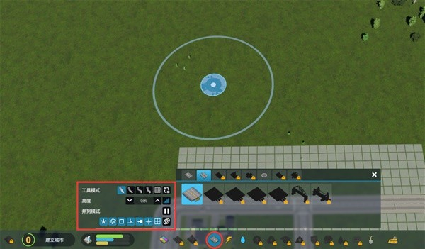 首先,连接道路,解锁土路,用土路建造路网,这样是为了前期成本更低。首先我们连接路网,把主路拉长一些,推荐环岛不宜堵车。这样用道路曲线工具建好环岛。