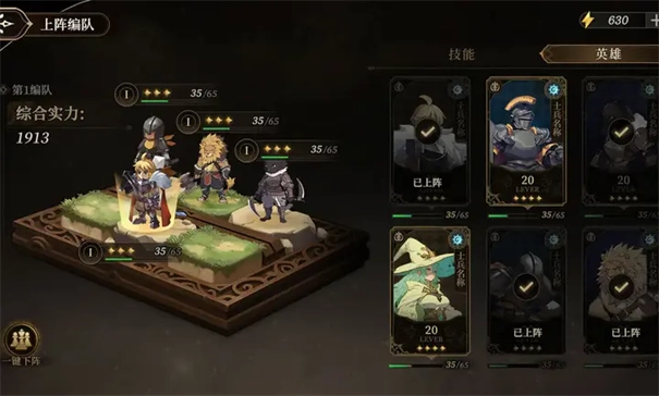 5、在关卡里点击右侧的编队按钮可以调整上阵的角色,改变角色释放技能的顺序,以及为不同的角色装备遗物。