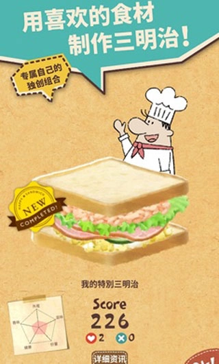 借助小游戏来提升制作三明治的技能,丰富三明治的种类。
