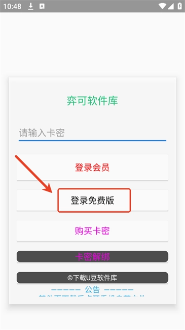如没有卡密,请点击【登录免费版】