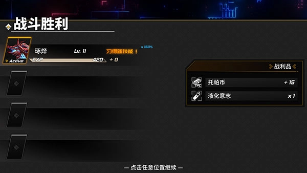 击败敌方角色即可赢得战斗胜利,结算界面也会展示我方角色获取的经验值以及战利品的相关情况。