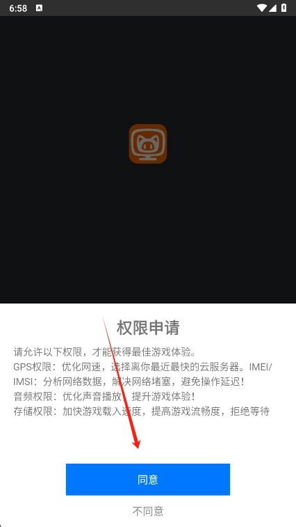 如图所示,"同意"相关权限申请访问。