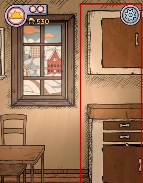 1、首先,书包坏了之后孩子会提示我们。然后来到厨房,点击餐桌,然后点击左边的剪刀按钮。