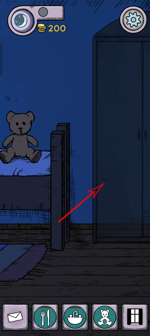 1、换衣服的操作很简单,首先点击下方菜单有着小熊图案的按钮,进入孩子的房间。