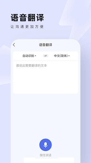 在语音翻译模式下,长按麦克风图标后开始说话,系统便会实时识别语音内容并完成语言转换。